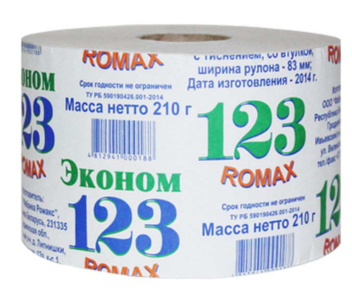 Туалетная бумага «Эконом - 123» со втулкой, 1-сл., 210 г