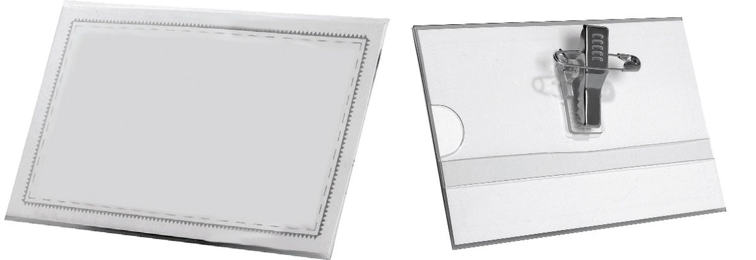 Бейдж пластиковый ErichKrause® горизонтальный, с металлическим зажимом и булавкой, 90х57мм