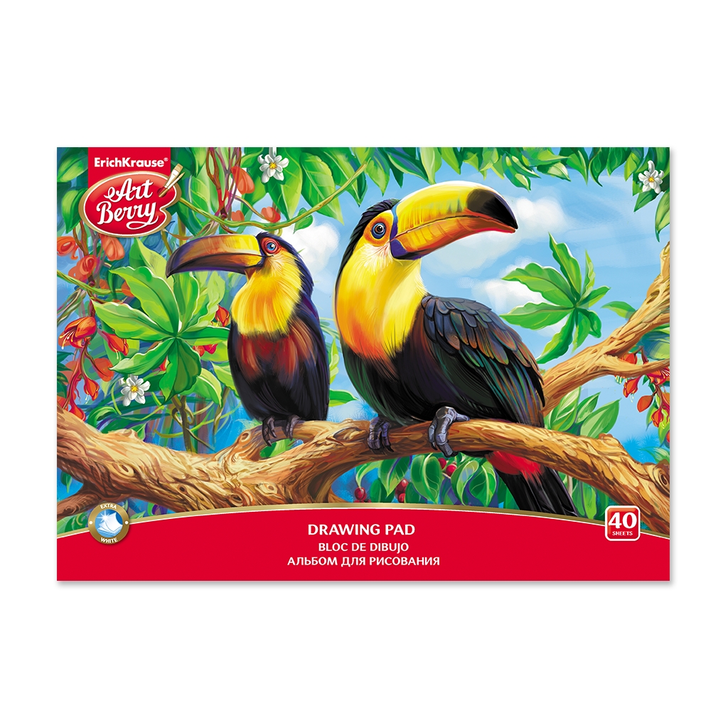 Альбом для рисования формата А4 (210*297 мм). Обложка из высококачественного мелованного картона плотностью - 170 г/м2. Жесткая подложка 360 г/м2. В блоке 40 листов. Бумага плотностью 120 г/м2. Белизна бумаги -100%. Тип скрепления - клей. Эксклюзивный авторский дизаин. Альбомы упакованы в термоусадочную пленку по 8 шт.