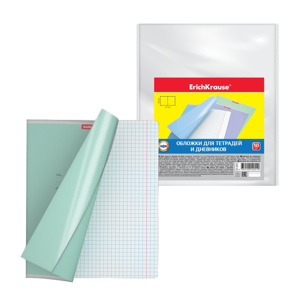 Обложки ErichKrause® Fizzy Clear для тетрадей и дневников, 212 х 347 мм (пакет 10 шт)
