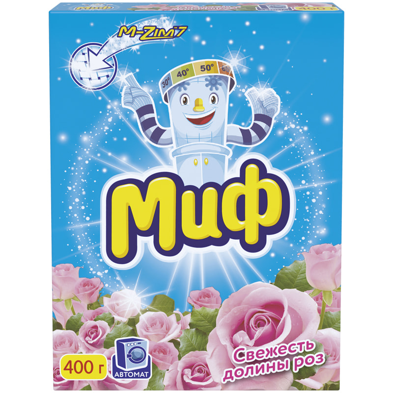 Стиральный порошок "Миф" предназначен для стирки в стиральных машинах любого типа. Стиральный порошок содержит комплекс элементов, благодаря которым белье после стирки становится чистым и свежим. Эффективно отстирывает различные пятна, а специальные отбеливатели, входящие в состав стирального порошка, сохраняют яркие цвета вещей. Стиральный порошок отлично отстирывает даже в холодной воде, потому что содержит специальные энзимы, которые начинают работать уже при низких температурах.