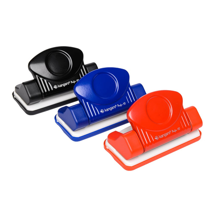 Компактный металлический дырокол Kangaro Perfo-10 с необычным дизайном. Прочная металлическая конструкция. Пробивает 10 листов.плотностью 80г/м Расстояние между отверстиями 80 мм. Диаметр отверстий — 5,5 мм. Съемный лоток для мусора.