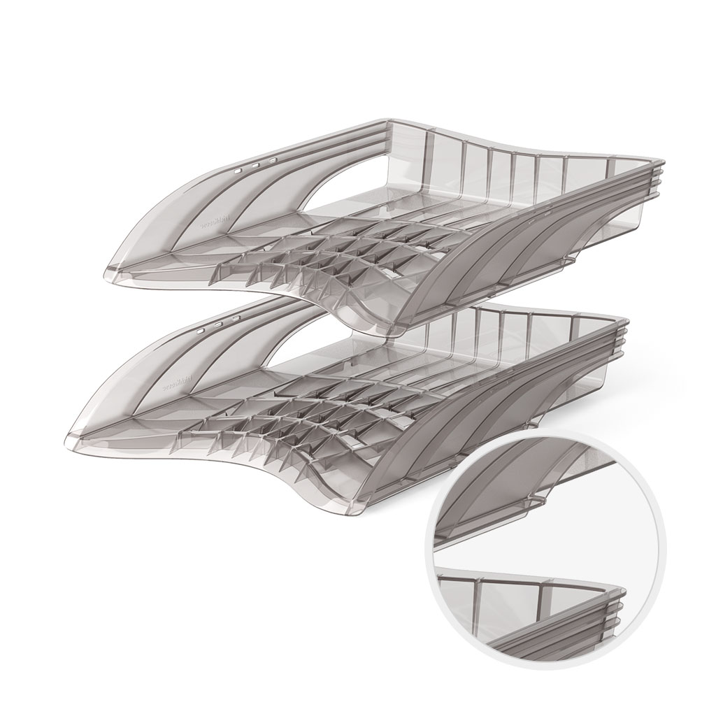 Настольный лоток для хранения документов, журналов и каталогов. Изготовлен из высококачественного пластика. Возможна установка нескольких лотков друг на друга.