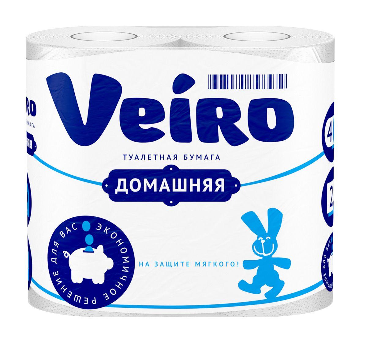 Туалетная бумага VEIRO Домашняя - двухслойная потребительская туалетная бумага с декоративным тиснением и перфорацией. Изготовлена из вторичного сырья. Плотная, удобная в использовании. Подходит для ежедневного пользования.