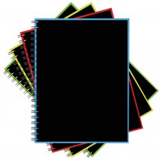 Тетрадь общая ученическая формата А4 (210х297 мм). Элегантный дизайн построен на контрасте черной внешней стороны обложки и яркой внутренней. Обложка из жесткого ламинированного картона с фактурным тиснением "лён". В блоке 120 листов в клетку. Бумага офсетная плотностью 60 г/м2. Цвет линовки - синий. Тип скрепления - спираль. Тетради одного цвета упакованы в термоусадочную пленку по 2 штуки.