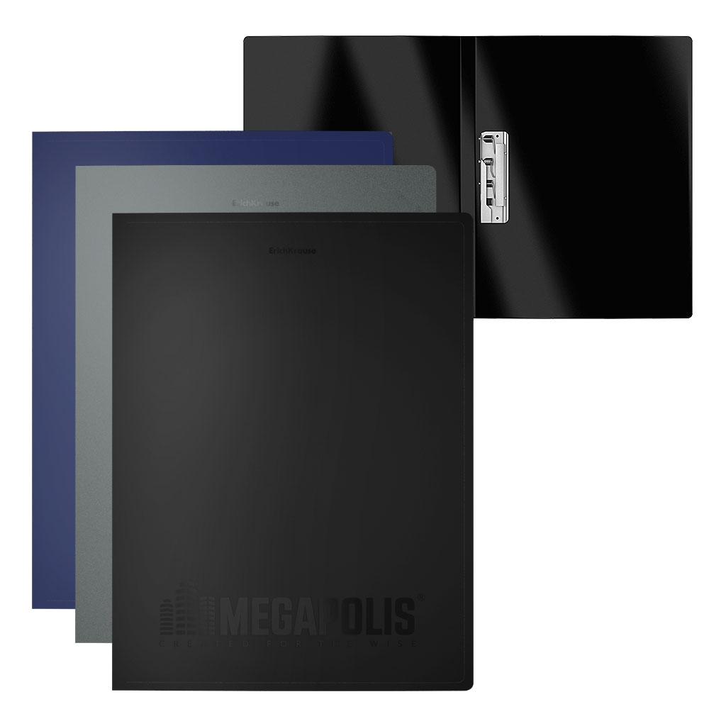 Папка с зажимом формата А4 из высококачественного пластика с текстурой поверхности "песок", на которой не видно отпечатков пальцев и мелких царапин. Предназначена для надежной фиксации и просмотра документов. Цвет папки – ассорти: черный, синий, серый. Механизм – боковой зажим; ширина корешка – 17 мм. Папка вмещает до 150 бумажных листов. Размер папки - 231х310х17, толщина обложки - 0.6мм. Код и баркод на каждой единице товара.