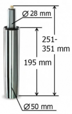 Основные размеры: Длина внешнего стакана: 195 мм; Ход штока: 100 мм; Типоразмер: 100 х 50 х 28 мм (для операторских кресел); Высота общая (мин-макс): 251-351 мм; Диаметр нижнего посадочного места: 50 мм; Диаметр верхнего посадочного места: 28 мм