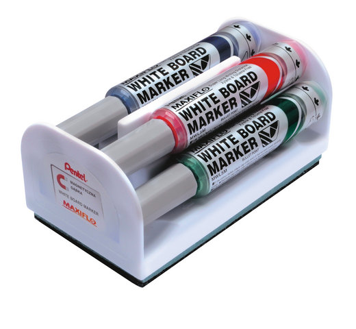 Набор маркеров для досок Maxiflo с магнитной губкой. 4 цвета маркеров закреплены в пластиковом контейнере, ко дну которого крепиться губка с магнитом для белой доски. Чернила, входящих в набор маркеров, выполняются на водной основе. Корпус включает в себя пулевидный наконечник, толщина письма 4 мм, длина письма 1200 м. Маркеры предназначены для письма на белых досках, блоках для флип-чартов. Чернила подаются с помощью системы подкачки чернил.