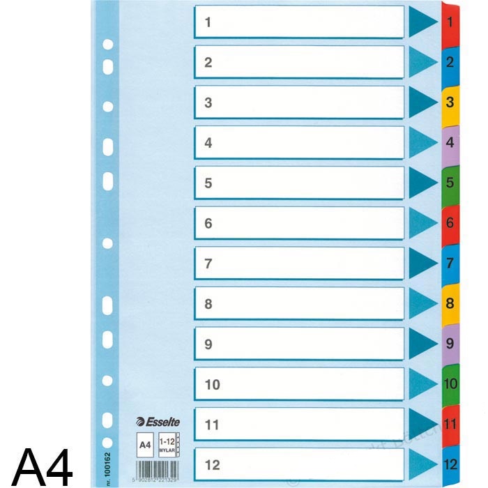 Для сортировки документов А4. Белый прочный картон плотность 160 г/м2. Цветные указатели укреплены пленкой (5-ти цветов). С информационно-маркерной картой, перфорация которой укреплена пленкой. Мультиперфорированные - подходят для любой папки-регистратора.