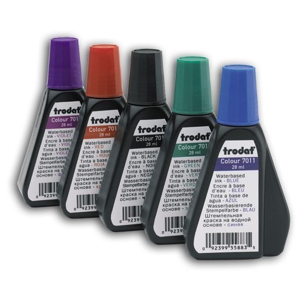 Штемпельная краска Trodat в бутылочке 28мл, с практичным дозировочным носиком. Не содержит масла. Подходит для всех видов штемпельных подушек, а также для металлических печатей. Цвета: зеленый, черный, синий, фиолетовый, красный.