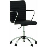 Классическое кресло изготовлено из износостойкой искусственной кожи и прочного металла. Удобное посадочное место и наличие подлокотников создают максимальный комфорт.