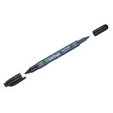 Двусторонний перманентный маркер Berlingo позволяет варьировать толщину линии от 0,5 до 1 мм. Заправлен стойкими и яркими чернилами на спиртовой основе. Подходит для использования на большинстве поверхностей, включая прозрачный пластик - не растекается. Цвет: черный.
