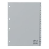 Разделители серого цвета. Большое поле на титульном листе для записи сведений о содержании рубрик. Прочная перфорированная полоска на титульном листе. 31 табуляторов, пронумерованных 1-31 для облегчения поиска нужных документов. Универсальная мультиперфорация (11 отверстий). Формат А4. ПП 0,12 мм